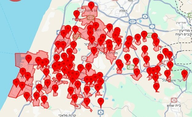 Сигналы тревоги прозвучали во всех районах страны, включая Гуш-Дан (от Нетании до Нес-Ционы), Иерусалим, Хайфу, Галилею, Самарию и т.д.